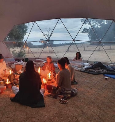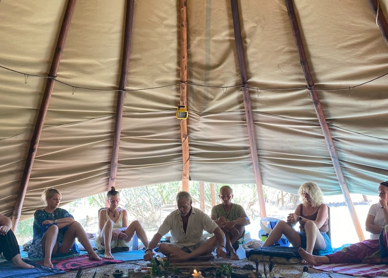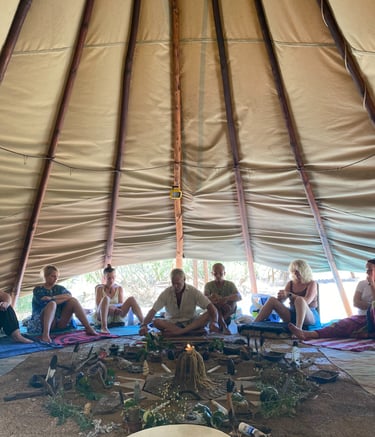 Held in D'shmeya Temple, or the Tipi, we hold men's only, women's only as well as mixed Ceremonies throughout the year, working with Ancient Rituals, and Medicines, as well as our famous New Years Day - 3 Wishes Water Meditation on the beach!