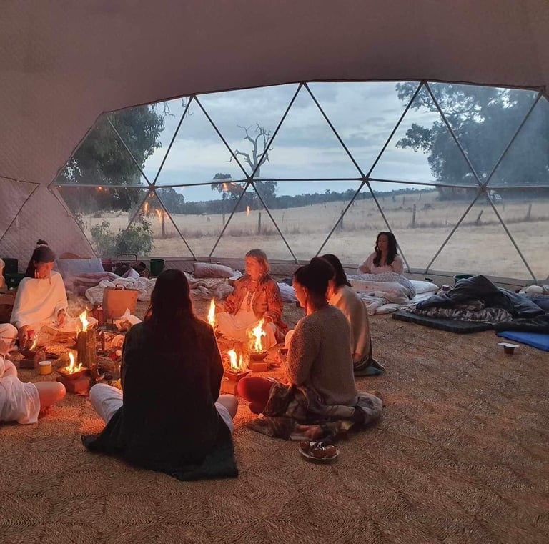 Held over the warmer late spring and summer months these are beautiful opportunites to connect with like minded sistars, expand the heart with Cacao, receive a channeled activation/journey for the unique signature of the group, and experience the healing, high frequency of Agnihotra fire Ceremony in a safe, protected and sacred circle.